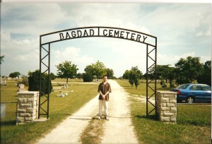 The Texas Chainsaw Massacre (1974) – one of the scariest movies ever made – was filmed in rural areas around Austin, TX, during a particularly hot summer in 1973.  When I travelled to Austin in May of 2001, I was both surprised and disappointed by what I found.  Surprised that some of the places, such as the cemetery and the gas station, had hardly changed in the almost 30 years since the movie was made.  But I was also disappointed to learn that the family’s farmhouse had recently been moved from its original location.  Still, I visited all the main sites from the movie, and the following are my photos from my visit to Leatherface’s hometown.